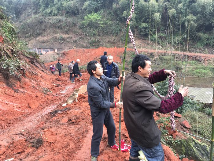 开工啦,村民们很高兴,放起了鞭炮。