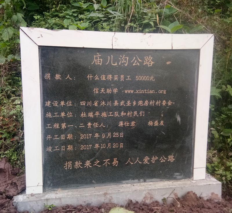 标题: 第134条:四川省沐川县武圣乡炮房村7组庙儿沟公路(拟zdm员工捐)