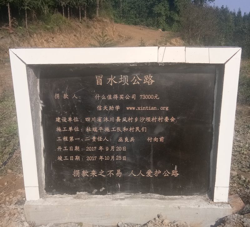 标题: 第135条:四川省沐川县凤村乡沙坝村1,4组冒水坝公路(smzdm公司捐)
