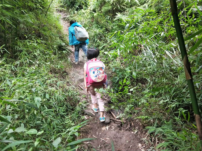 小学生上学之路,修通了公路之后,他们就能坐拖拉机和面包车上学了。
