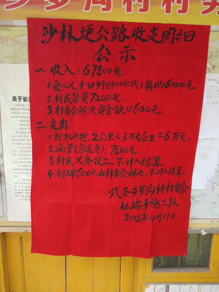 (1)爱心人捐款、村民投工投劳一起修土路,干季可以通车;