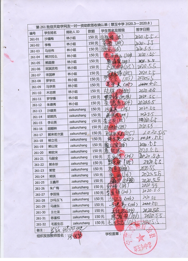 第261批翠玉中学(2020年3月-2020年8月)受助学生签字确认单