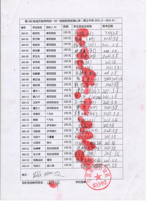 第260批翠玉中学(2021年3月-2021年8月)受助学生签字确认单