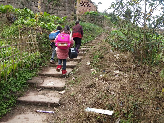 小学生上学之路,等修好了路之后,就可以坐拖拉机、面包车上学了,或者骑自行车上学了。