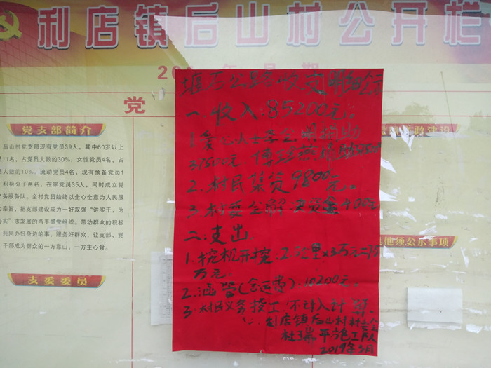 (1)爱心人捐款、村民投工投劳一起修土路,干季可以通车;