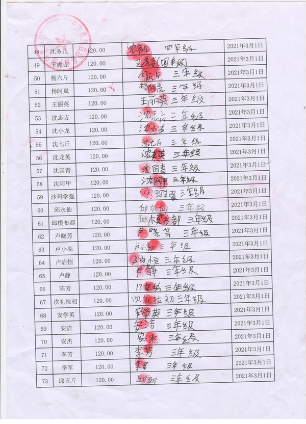宁利中心完小,2020-2021年早餐计划第二次发款签收单