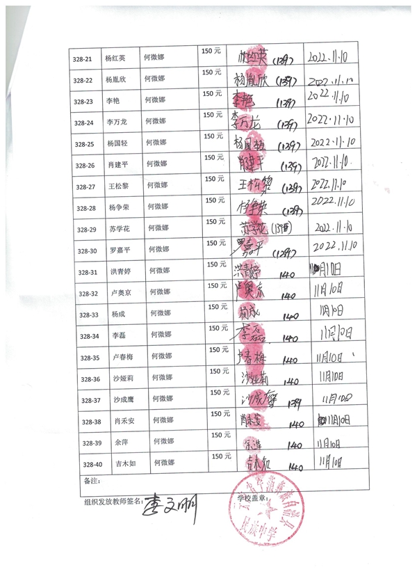 第328批宁蒗民族中学-初中部(2022年3月-2022年7月)受助学生签收单