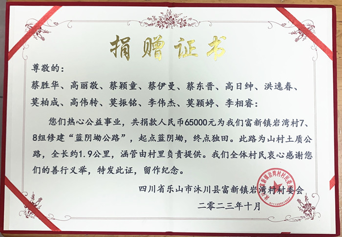 标题: 第335条:四川省沐川县富新镇岩湾村7/8组蓝阴坳公路-已定