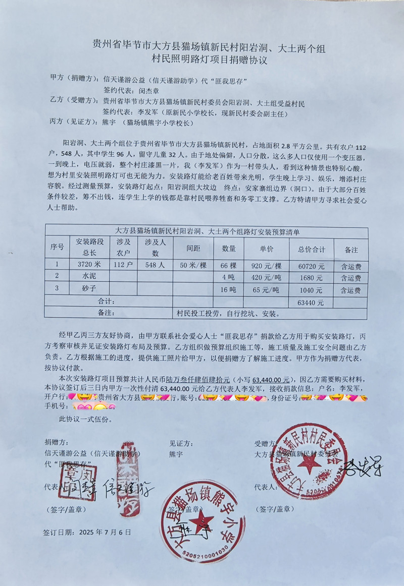 » 贵州省大方县猫场镇新民村阳岩洞、大土村-捐赠太阳能路灯
