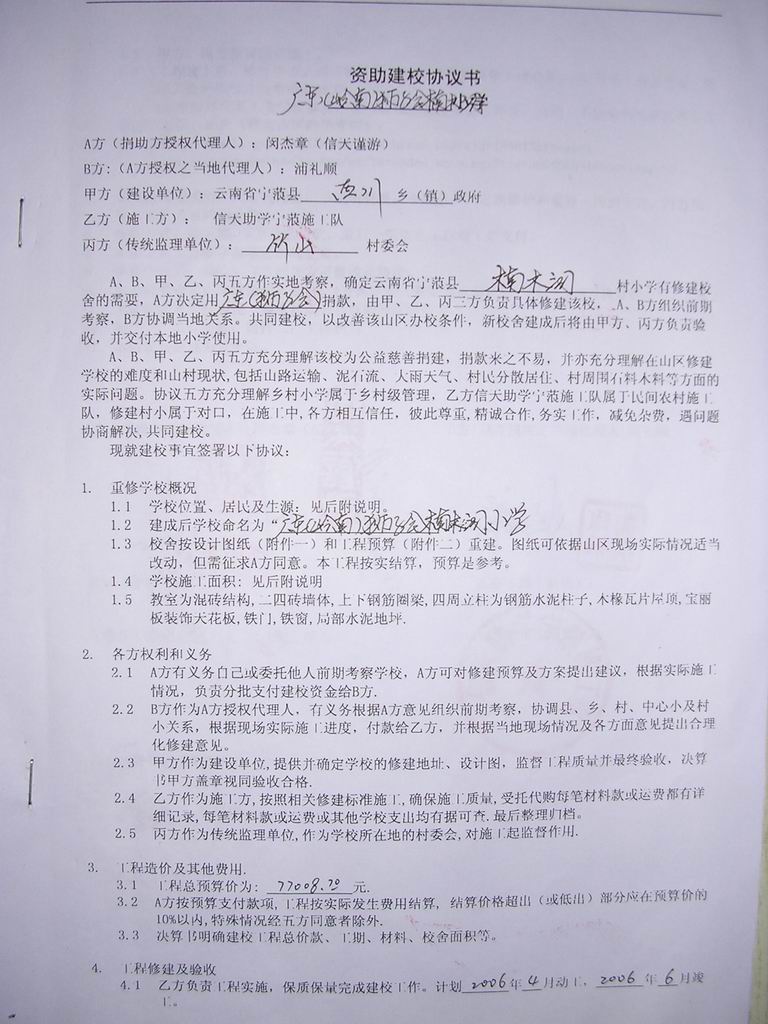 二、《资助建校协议书》及附件《图纸》和《工程预算单 》