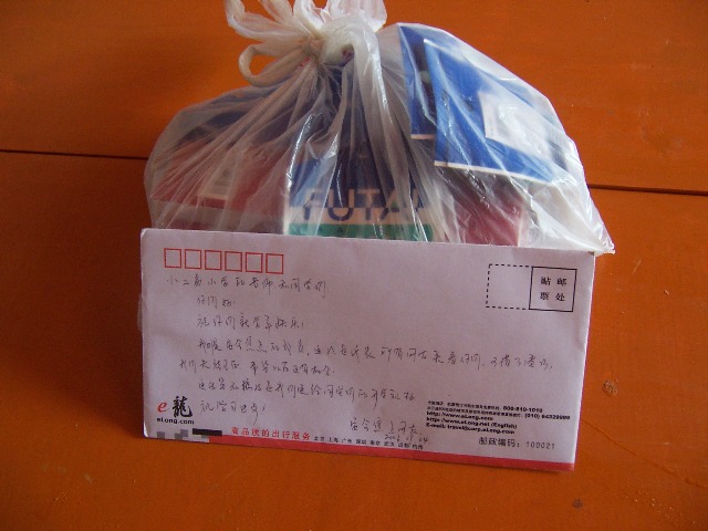 因为老师和同学们都不在,所以只好把带的一点文具留在他们的教室里