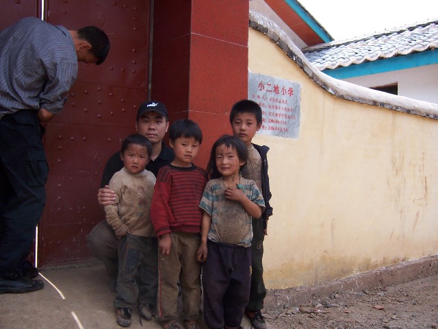 : [遇到几个家在学校附近的小朋友,这是eyas 跟他们在教室和大门口的合影]