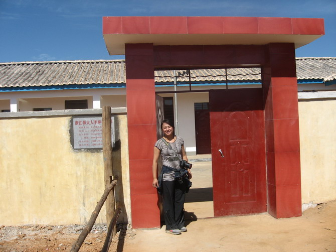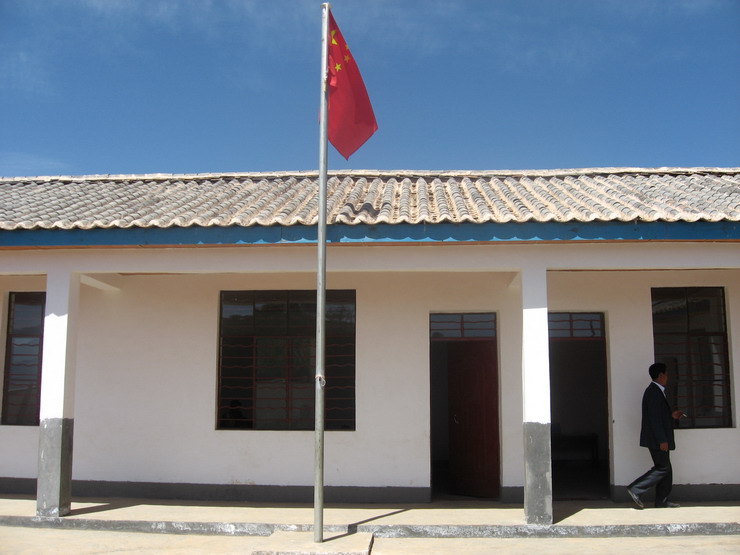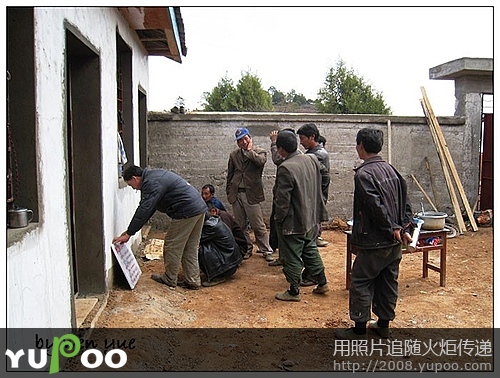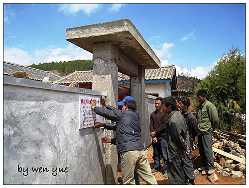天空放晴了,大朵大朵的白云围绕着小村庄,工人师傅们短暂休息后又投入紧张的工作。我在村子里随意地走走,几个村民围在水窑前等着提水,尽管国家出资为宁蒗的偏远山村修建了水窑,供水却时断时续,严重影响了工程的进度,工期一拖再拖,所以学校到现在还没有开学。