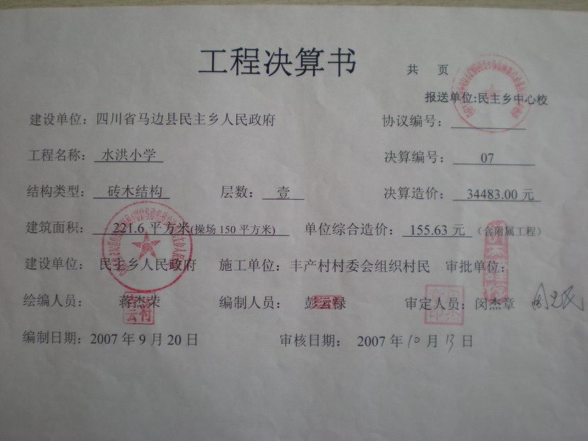 标题: 第62所:四川省马边县民主乡水洪小学修建总结
