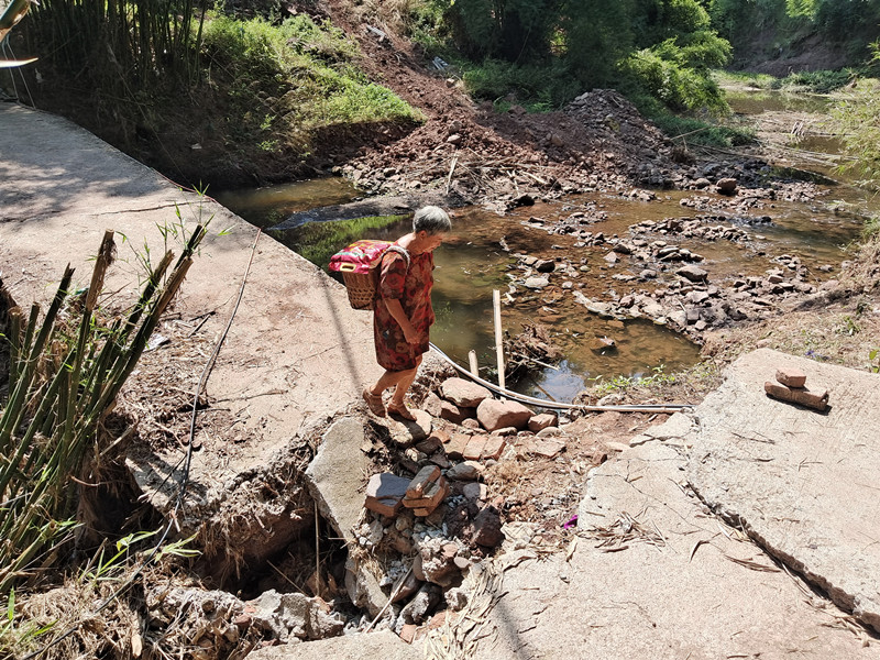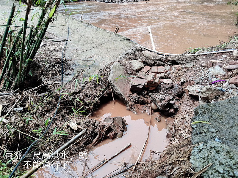 这座桥是河两岸32户136名村民生产生活的唯一通道。该桥原为村民十多年以前自建的简易桥(桥宽2.4米),桥面较低,可通行中小型三轮车。然而,该桥已于2025年7月25日被洪水冲毁,现已成为危桥。目前,枯水期行人需谨慎观察通行,涨水期间则完全禁止通行,存在严重的安全隐患。