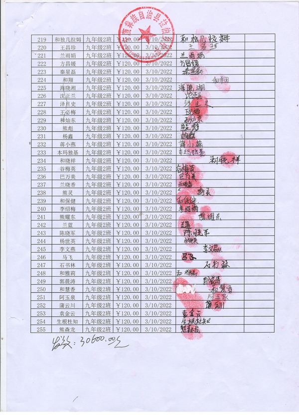 拉伯中学,2021-2022年早餐计划第二次发款签收单