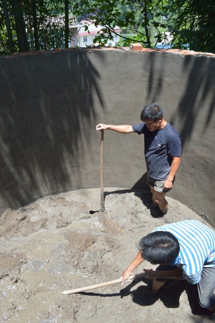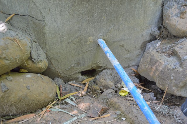 从这根管子引水到学校,下面的洞准备接一根管子出去,用于以后清洗水池.