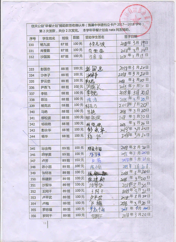 信天公益“早餐计划”资助款签收确认单13(蒗蕖中学).jpg
