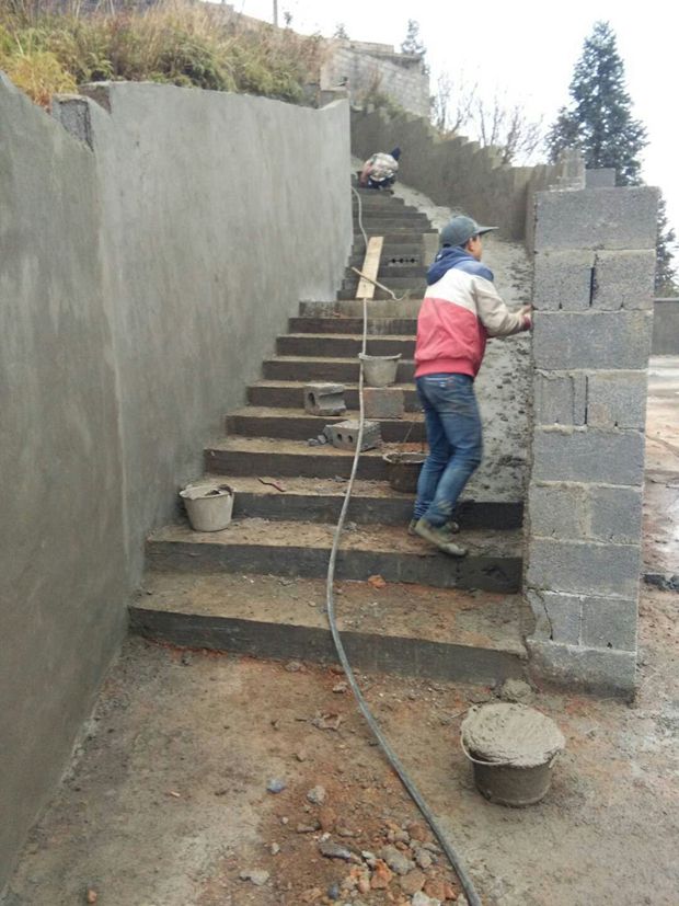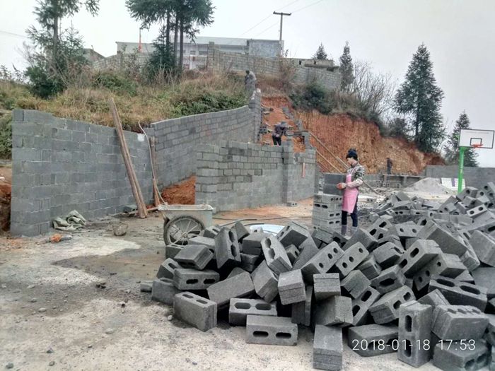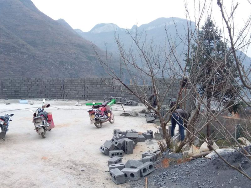 开始砌围墙。