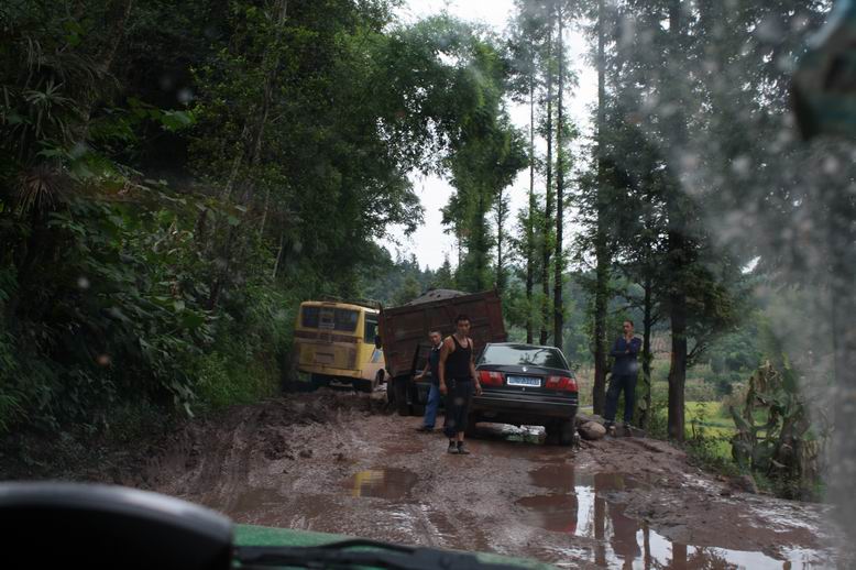 喘口气...由于路断,两头的车都无法前行,我们就在对面又包了一辆长城柴油车..很有劲的说。.