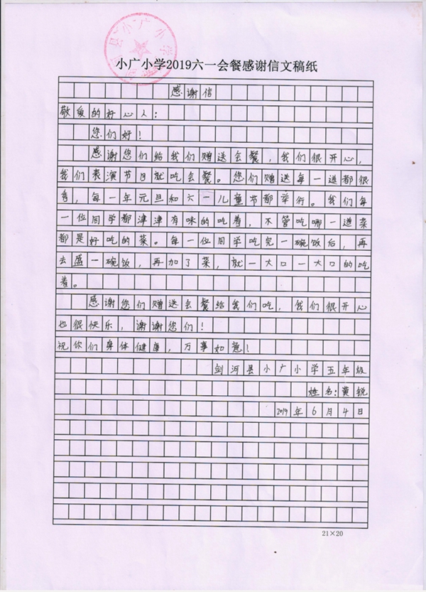 学生写的感谢信
