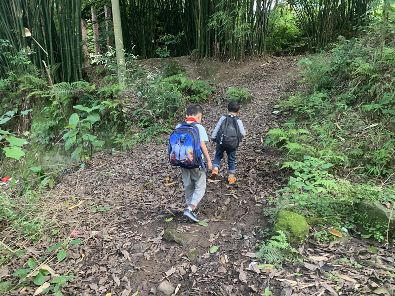 小学生上学之路,等修好了路之后,就可以坐三轮车、面包车上学了,或者骑自行车上学了。