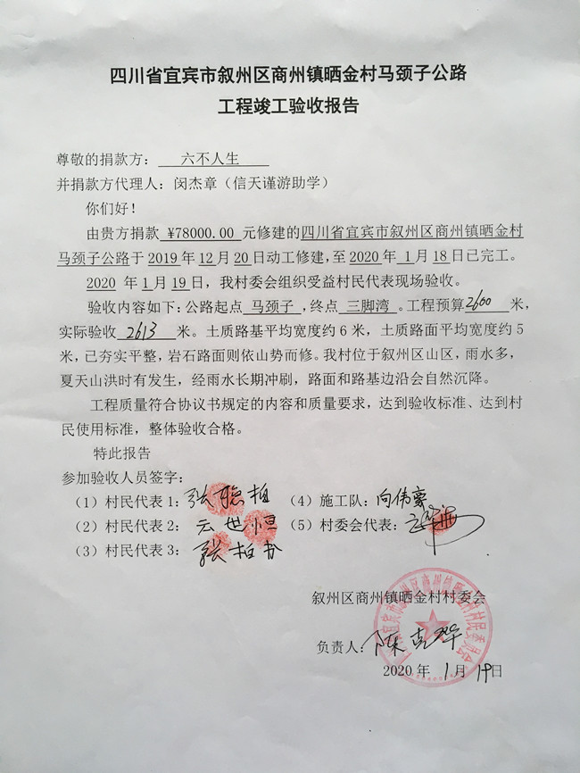 (1)爱心人捐款、村民投工投劳一起修土路,干季可以通车;