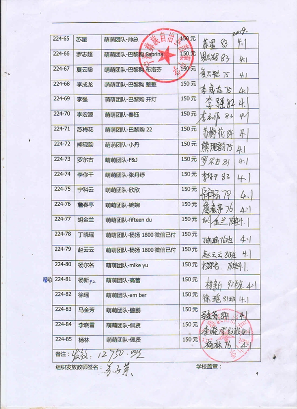 第224批蒗渠中学(2019年3月-2019年7月)受助学生签字确认单