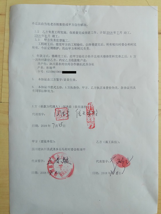 捐助修路协议书