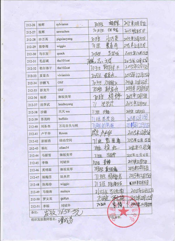 » 第212批受助学生名单(蒗渠中学51名,散捐,认捐完毕)