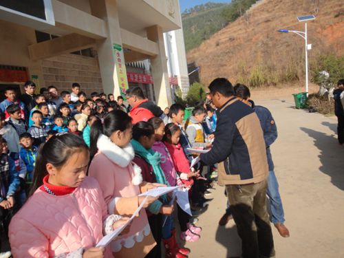 蒗渠中学,一起发放资助款,学生领款照片