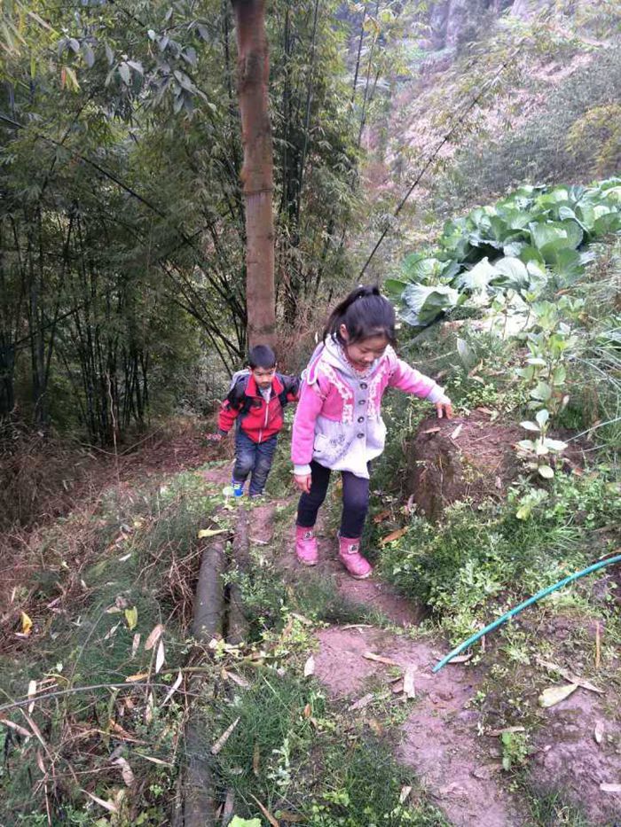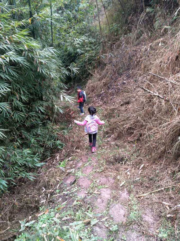 小学生上学之路,等修好了路之后,就可以坐拖拉机上学了,或者骑自行车上学了