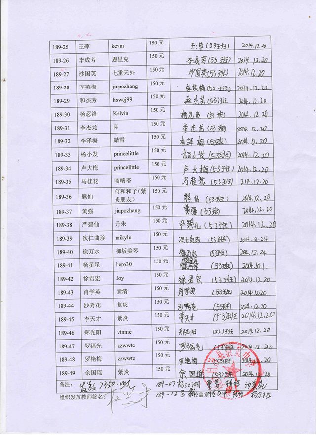 princelittle在2014年10月15日已通过淘宝付款留言,随机资助两名初中学生,随机选择189-33杨小发,189-34卢大梅;淘宝店已确认收款,并在第1页帖子中记录了。