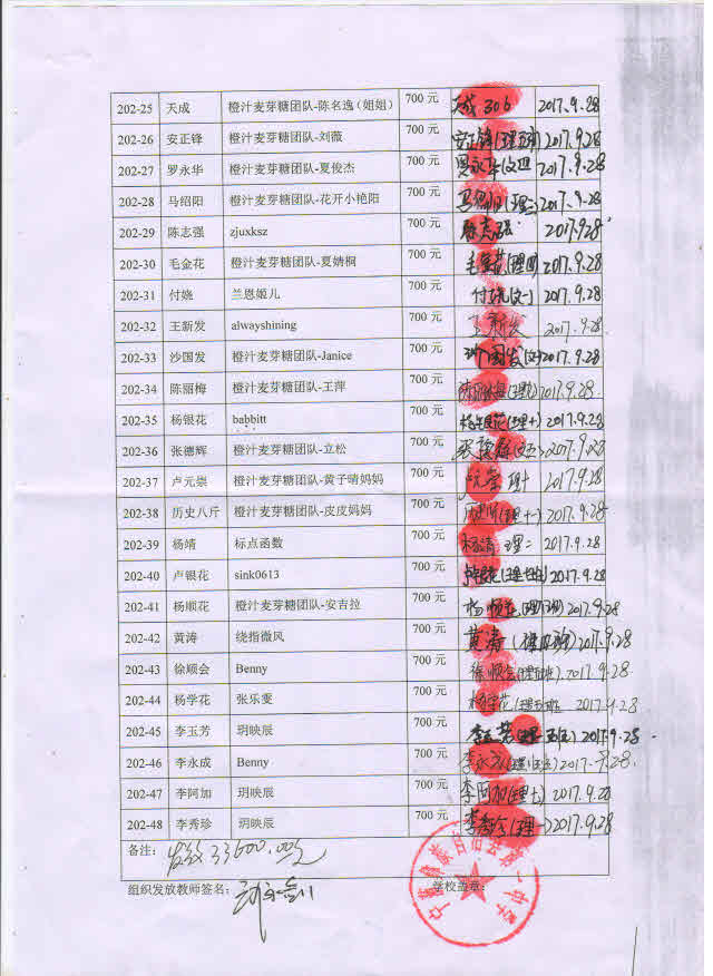 2017年7月13日 建行 1400.88 202批 202-18安务红 会飞的大毛豆已确认汇出 2017年9月至2018年7月一个学年的资助款