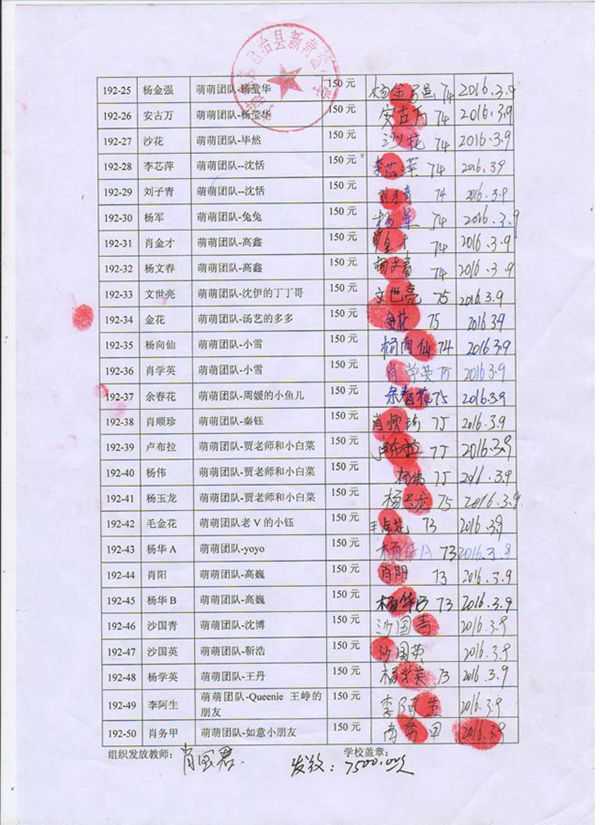 第192批新营盘中学(2016.03-2016.07)受助学生签字确认单