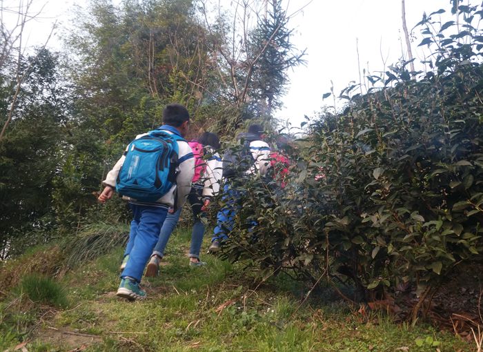 小学生上学之路,等修好了路之后,就可以坐拖拉机上学了,或者骑自行车上学了。