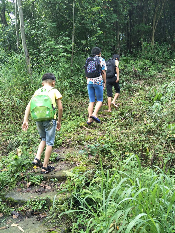 小学生上学之路,等修好了路之后,就可以坐拖拉机、面包车上学了,或者骑自行车上学了。