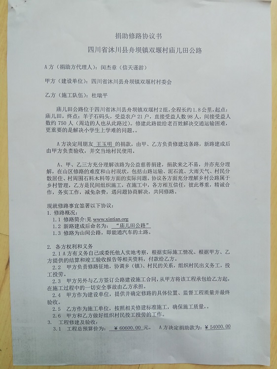 (1)爱心人捐款、村民投工投劳一起修土路,干季可以通车;