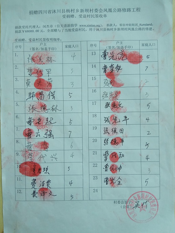 受益村民签字单