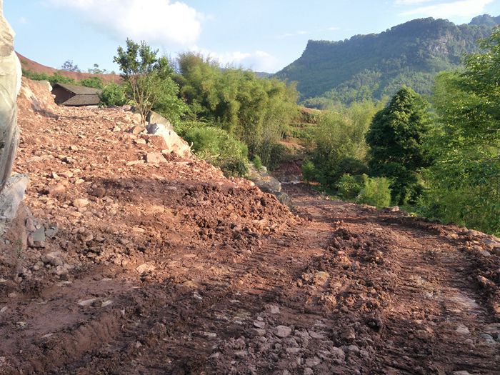 这两天在下雨,目前已经修了大约600米左右,最近就计划安装涵管,因为有两条河沟必须要通水,害怕涨水会冲毁公路,先安涵管。