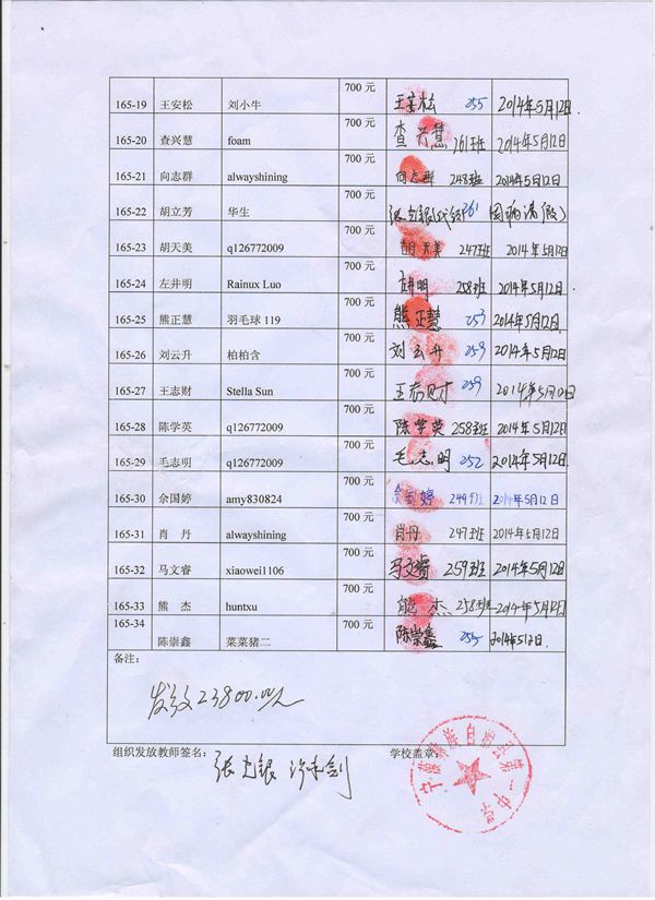 第165批宁蒗一中(2014年3月-2014年7月)受助生签收单
