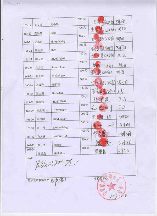 注:165-35杨琛同学,转学到宁蒗民族中学就读。 详见164批签收单。