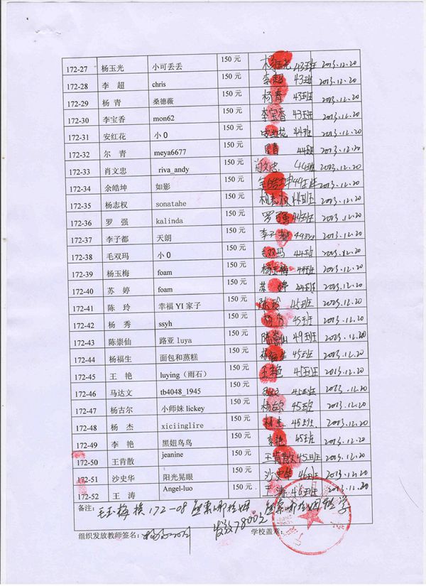 » 第172批受助生名单(蒗渠中学初一52名,认捐完毕)