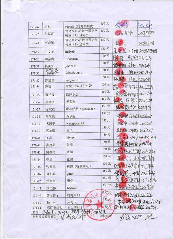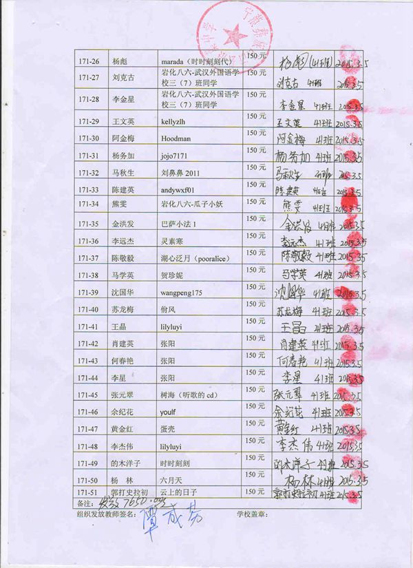 第171批l蒗渠中学(2015年3月-2015年8月)受助学生签字确认单
