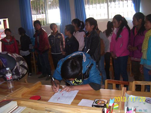 8、我们和当地老师达成如下共识:如果捐助人碰到学生提到需要东西,比如要眼镜、随身听、字典、书籍或有其他方面的情况。可以告诉学生先把他们的困难告诉老师,由老师落实具体后再转告给我们。