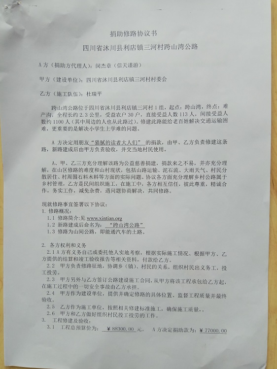 (1)爱心人捐款、村民投工投劳一起修土路;