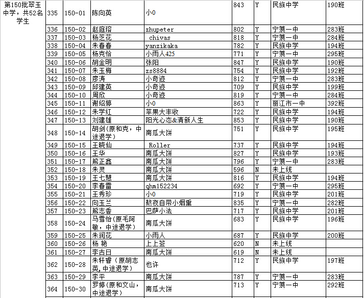 3、148-33朱东平,中考成绩:708分;录取学校:永胜民族中学;