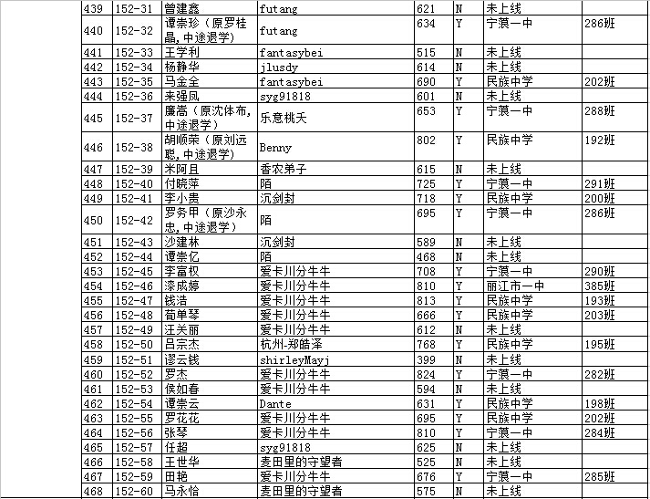 1、144-03沙学峰,中考成绩:726分;录取学校:宁蒗一中296班;