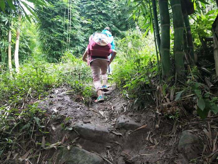 小学生上学之路,修通了公路之后,他们就能坐拖拉机和面包车上学了。