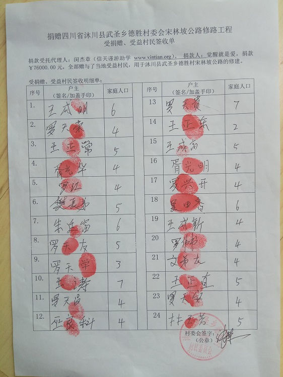 受益群众签字单